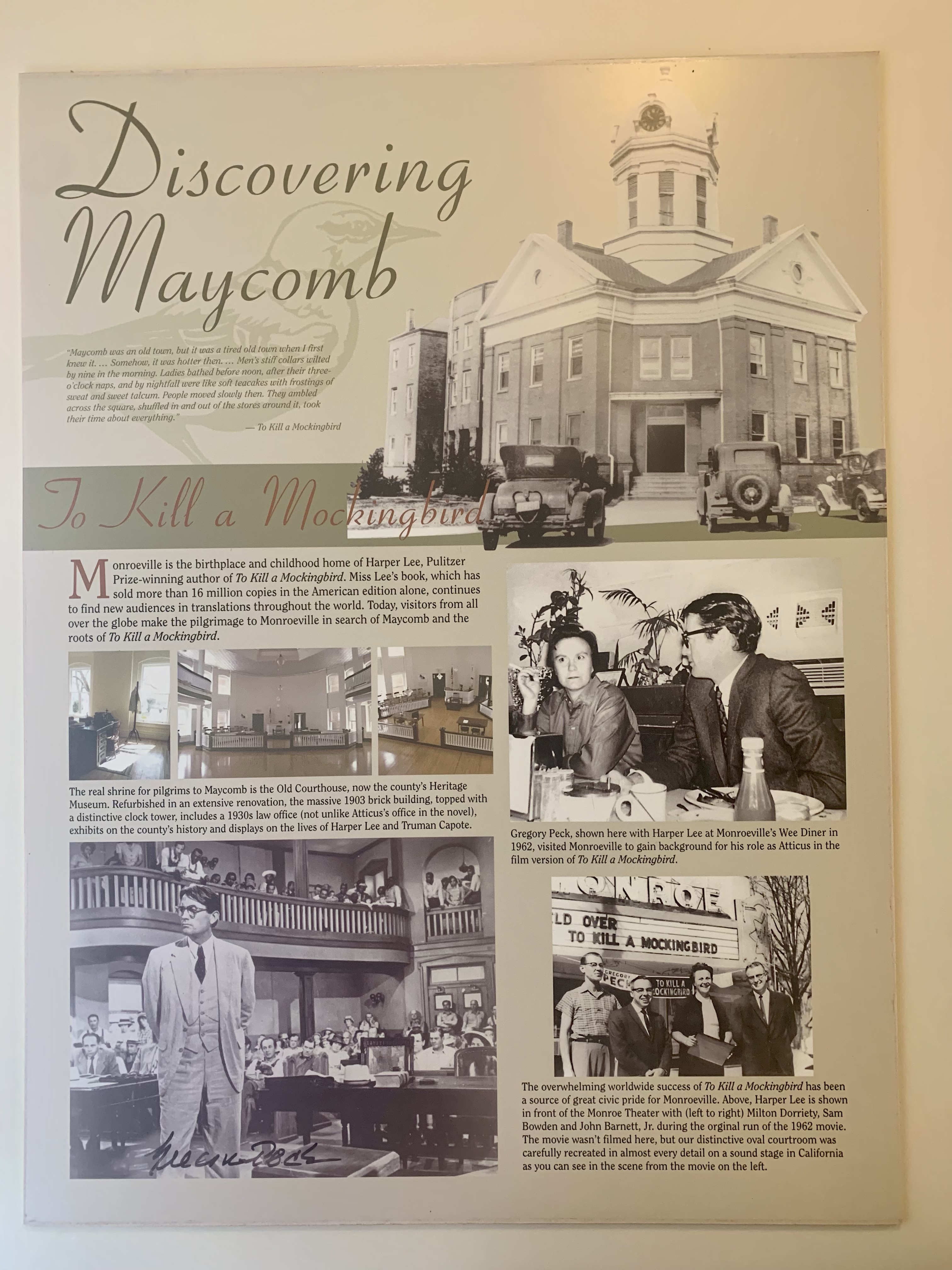 Today we spent time in Monroeville, Al, the literary capital of Alabama. Turns out you can put that on your welcome sign when you have two childhood neighbors, one Pulitzer Prize winner and another final for the award. “To Kill A Mockingbird” is Joanie’s all time favorite book and I could almost see tears flowing from her eyes when we pulled into the city. I had actual tears flowing when I found out I had to pay $5 to visit the courthouse depicted in the movie, not the actual courthouse mind you but the one depicted. Good gosh, sweet home Alabama!
