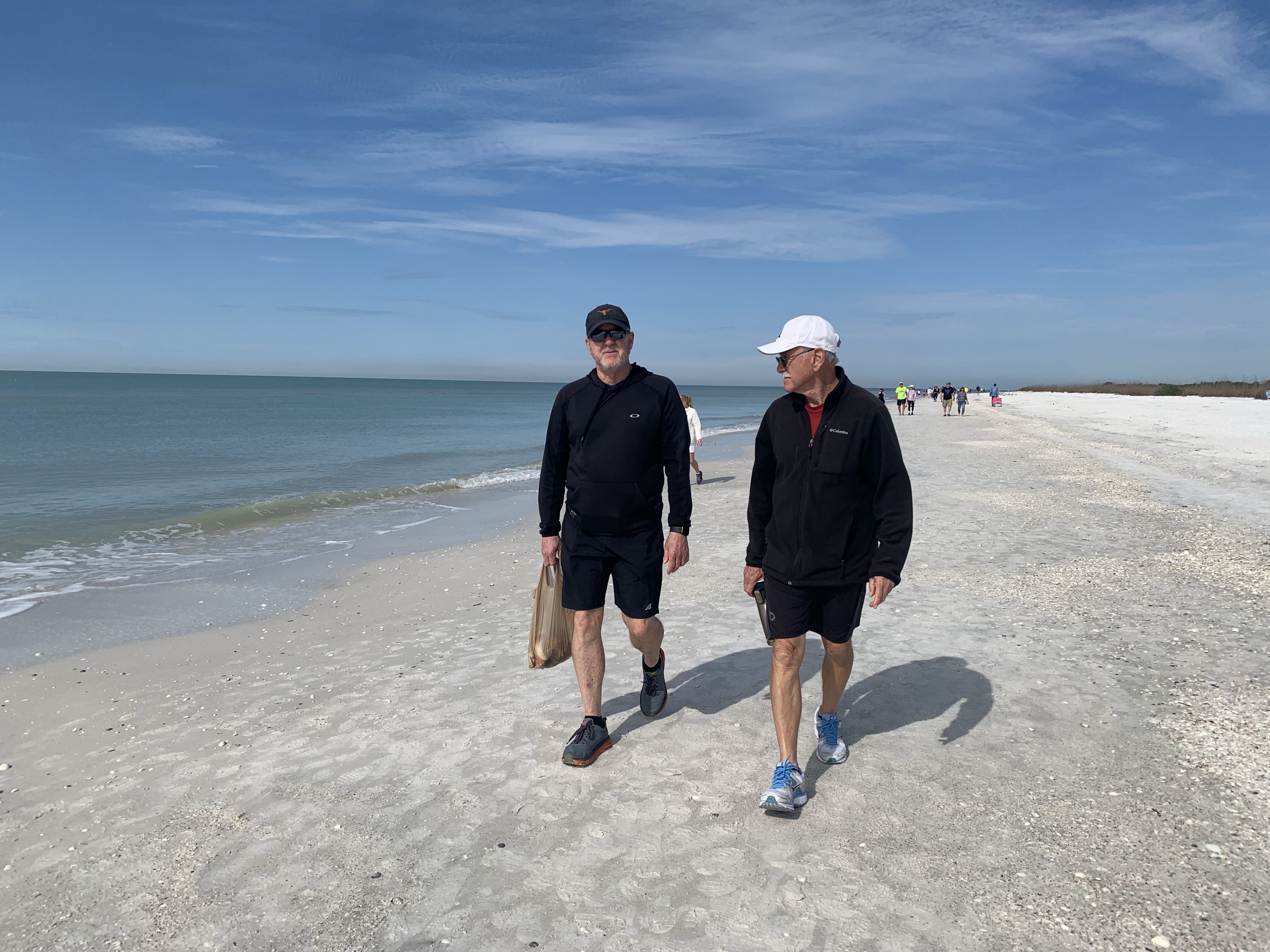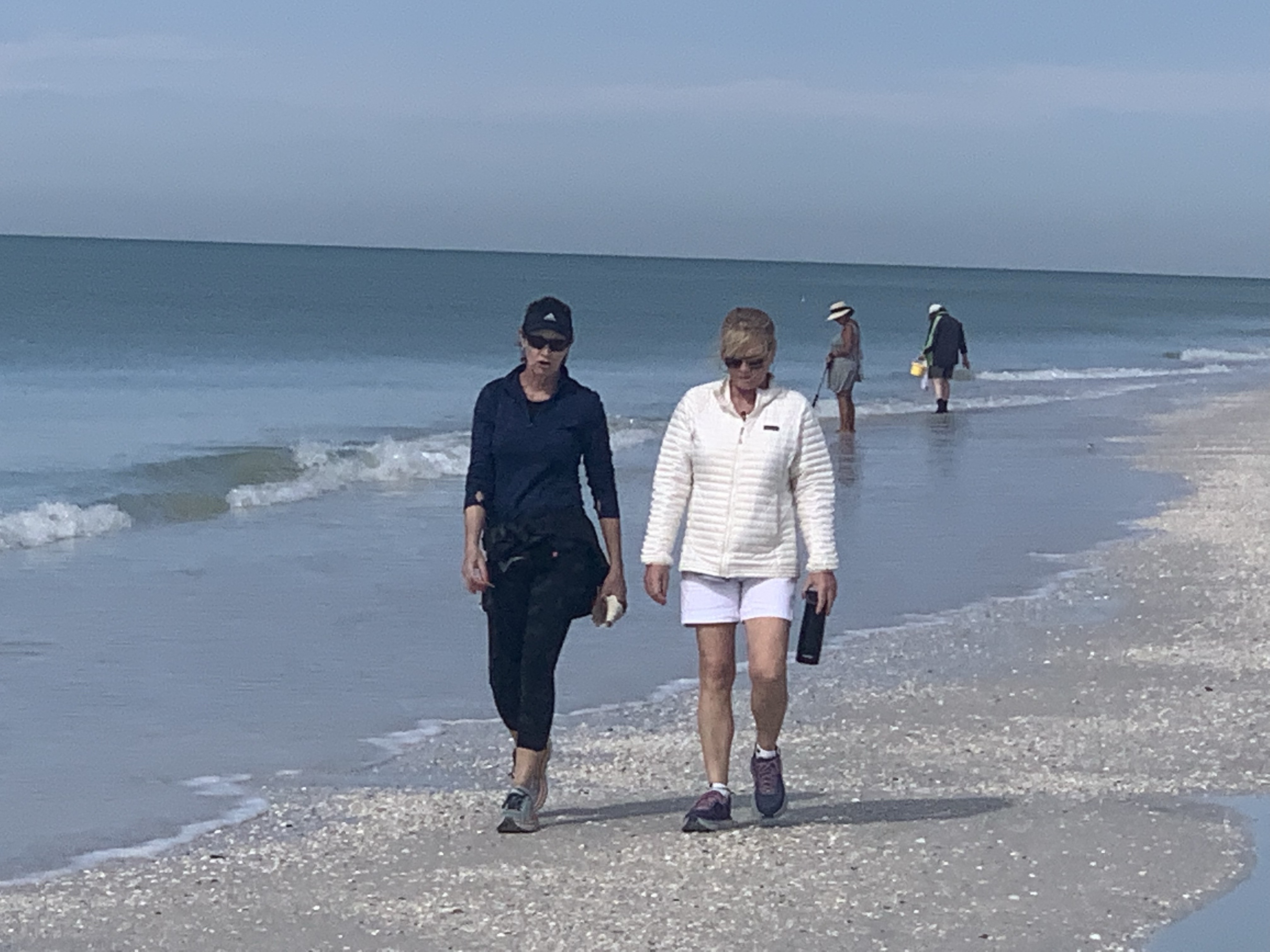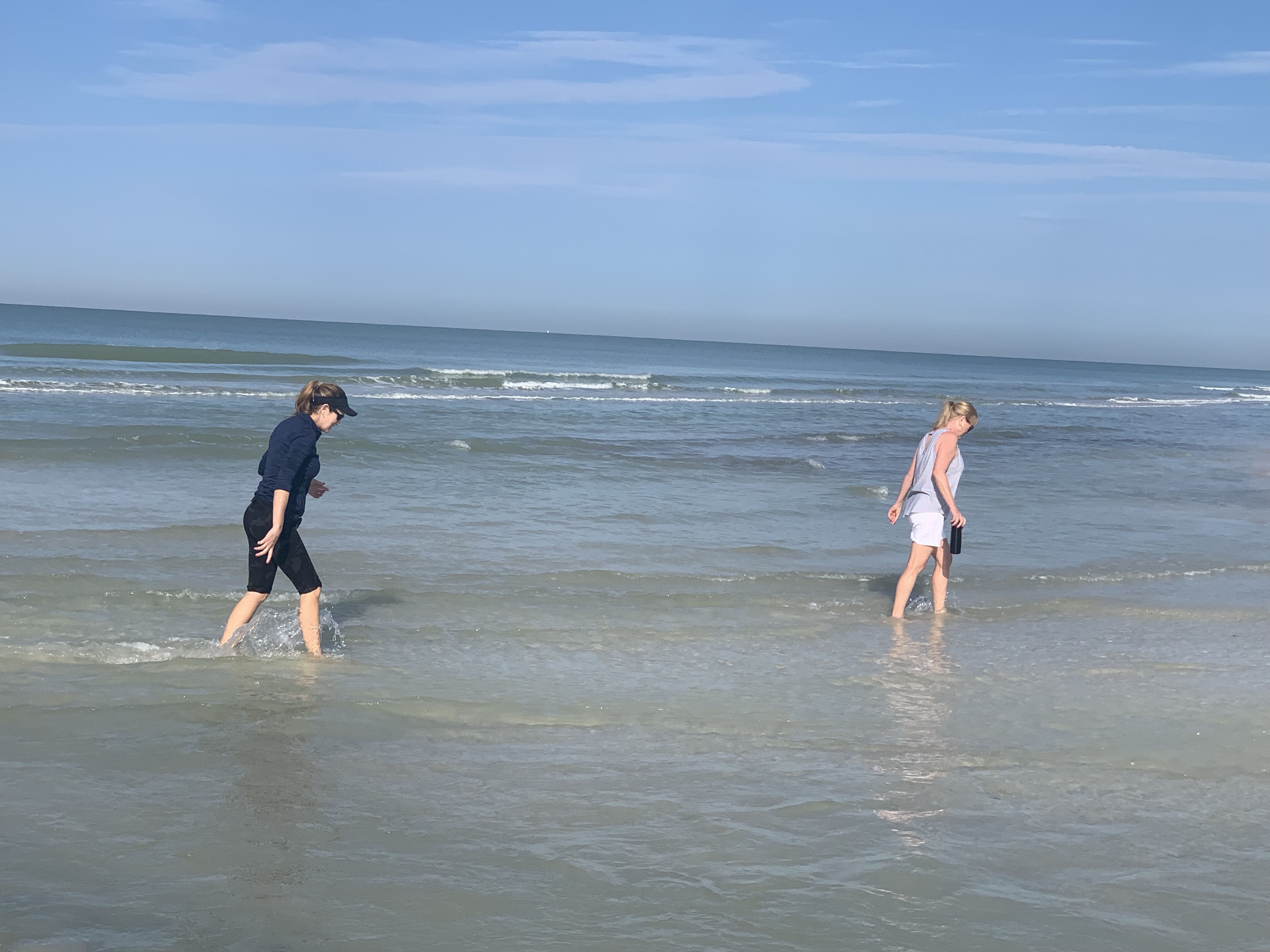 Yesterday we spent time on the beach in beautiful 65 weather. We learned from Ed and Shelly that we didn’t venture far enough down the beach the day before to find the most shells. Turns out you have to wade through the rip currents and quicksand to get to the other side of the beach. The upside of the attempt is that you reach the mother load of shells and sand dollars, the downside is that you risk your life for the opportunity. Long story short, Ed and I watched our two brave girls navigate that death crossing and come back with a plentiful bounty. And bonus, while waiting we were entertained by plenty of successful and failed attempts. Overall a great time.