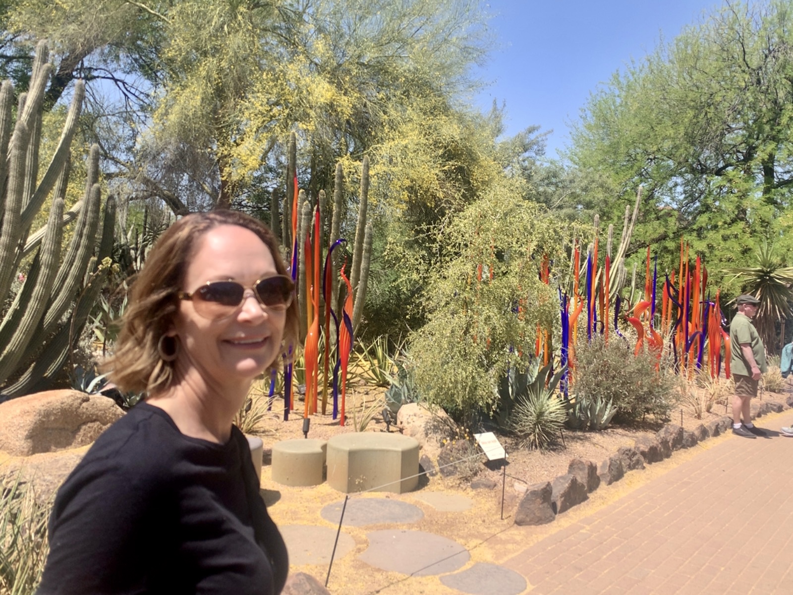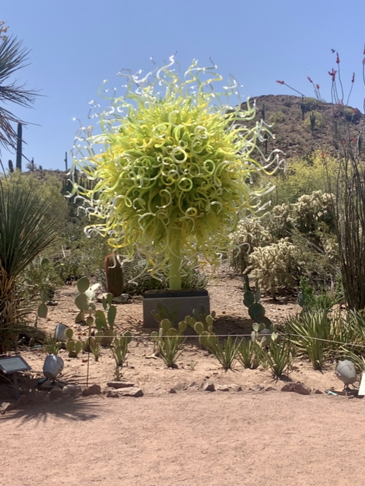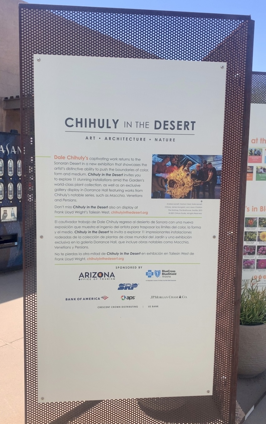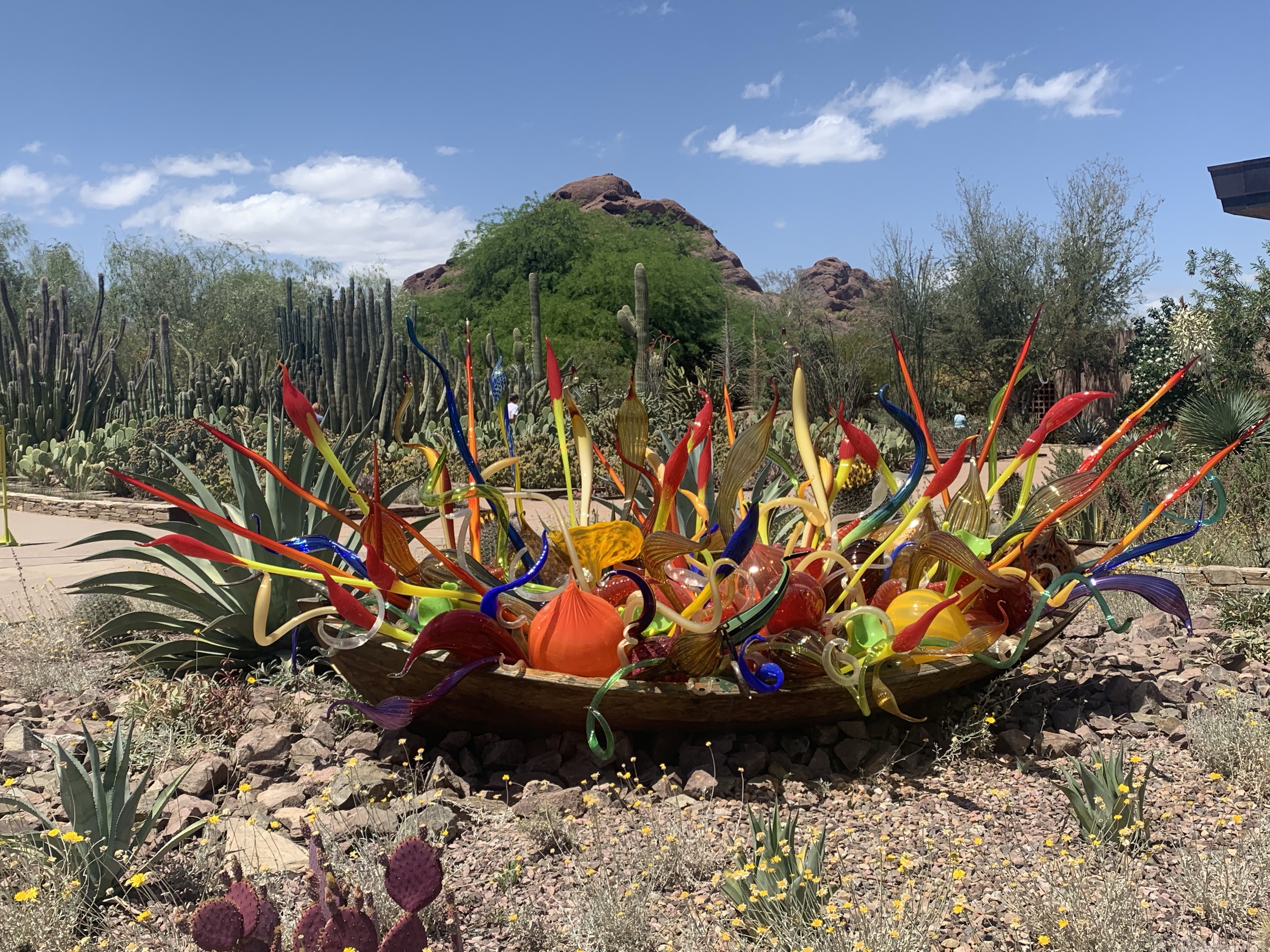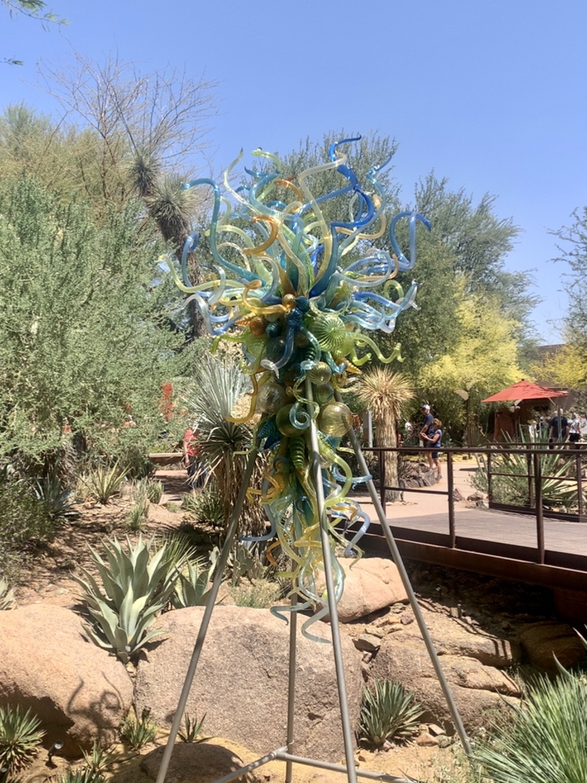 We spent yesterday checking out the Chihuly Exhibit at the Desert Botanical Garden in Phoenix. What are the chances that there are 2 Chihuly exhibits going at the same time? It turns out pretty good, we started out at Taliesin West (Frank Lloyd Wrights home) and were told we were in the wrong place…after a mad dash south to the right location we were able to meet our time allotment. I was so proud of both of us for handling this predicament like true adults, I think we are finally growing up.