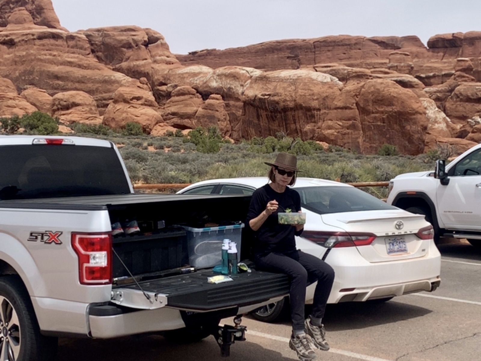 We’ve moved our spot at Dead Horse Point State Park, if possible I think our views just improved. Just finished eating lunch at Gloria’s in Moab, heading to the Ford Dealership down the road. Could I have actually bent the hitch for the trailer connection…please say it ain’t so?!