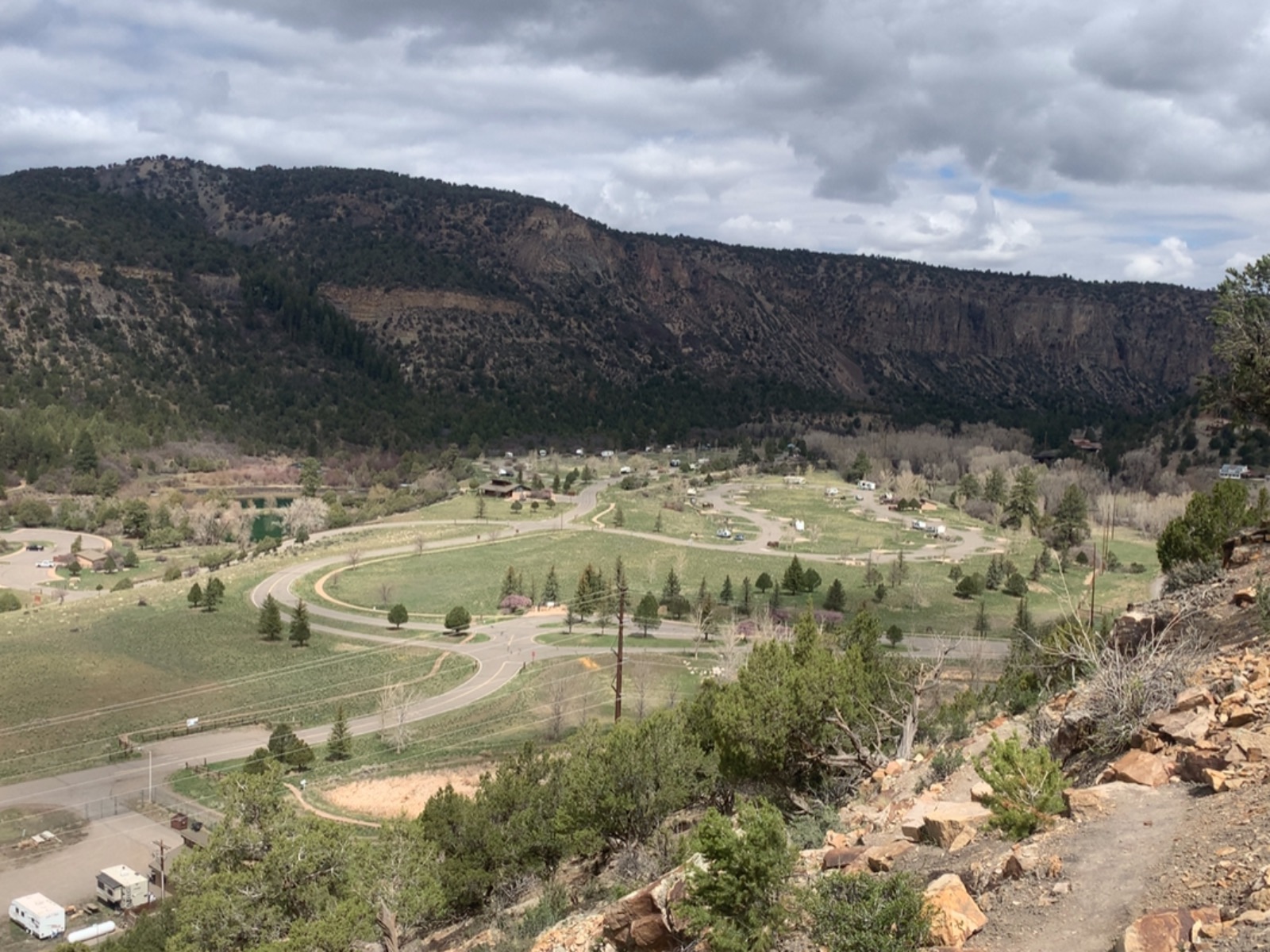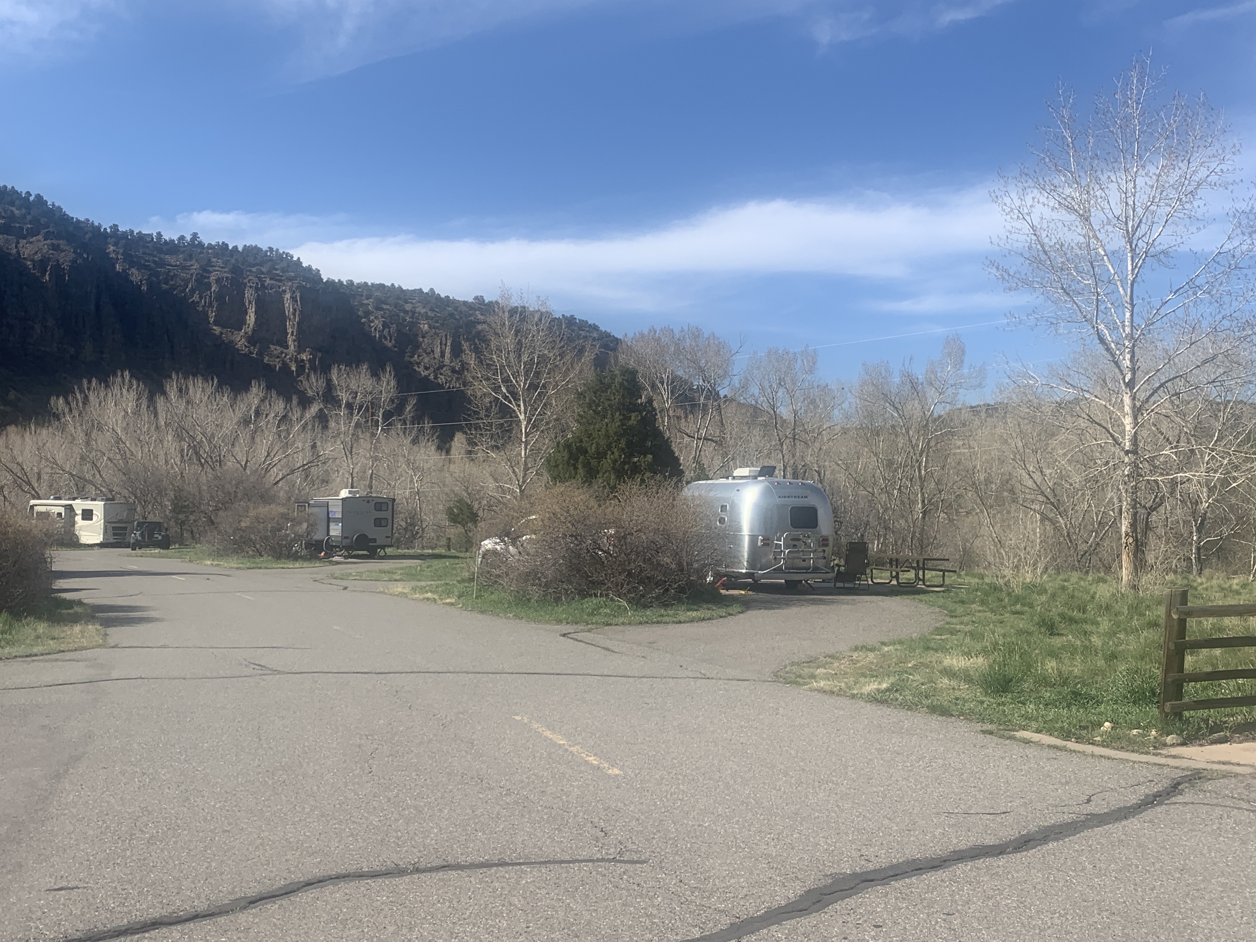 We enjoyed our stay at Ridgway State Park so much last year that we decided to return on our trip back towards Tejas. Using Joanie’s valuable notes from last year we were able to find a site close to recent bear activity but more importantly close to the bano. Any view at this park is beautiful but our view of the mountains and Uncompahgre River was superb…great note taker my Joanie!