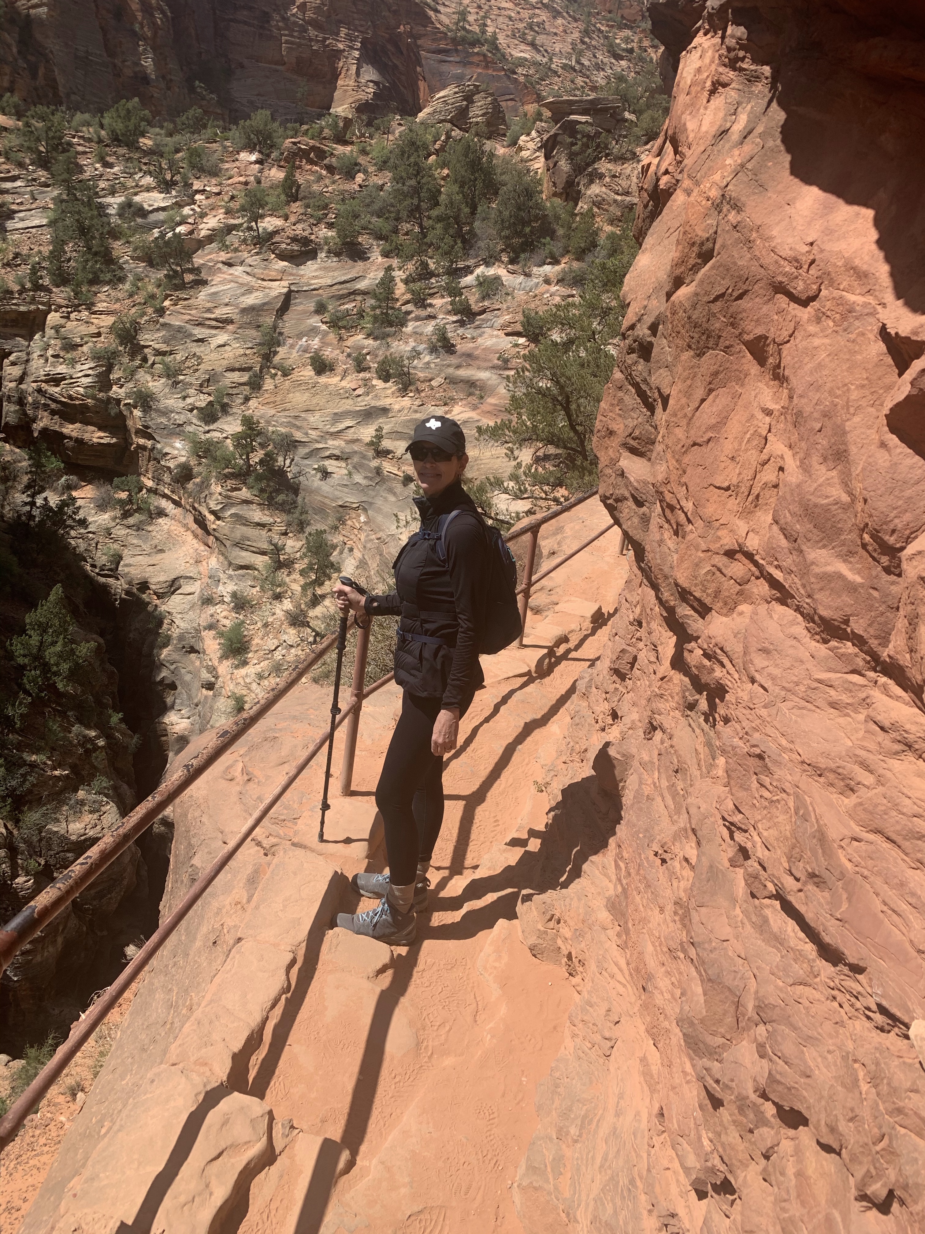 Spectacular is the only way to describe the views at Zion. Since we were unable to actually go into the Canyon, the first tram tickets available were August, we took a nice hike to the overlook. Although a short mile plus hike, we were still able to see the beautiful cliffs and enjoy the near death experience of falling off one.