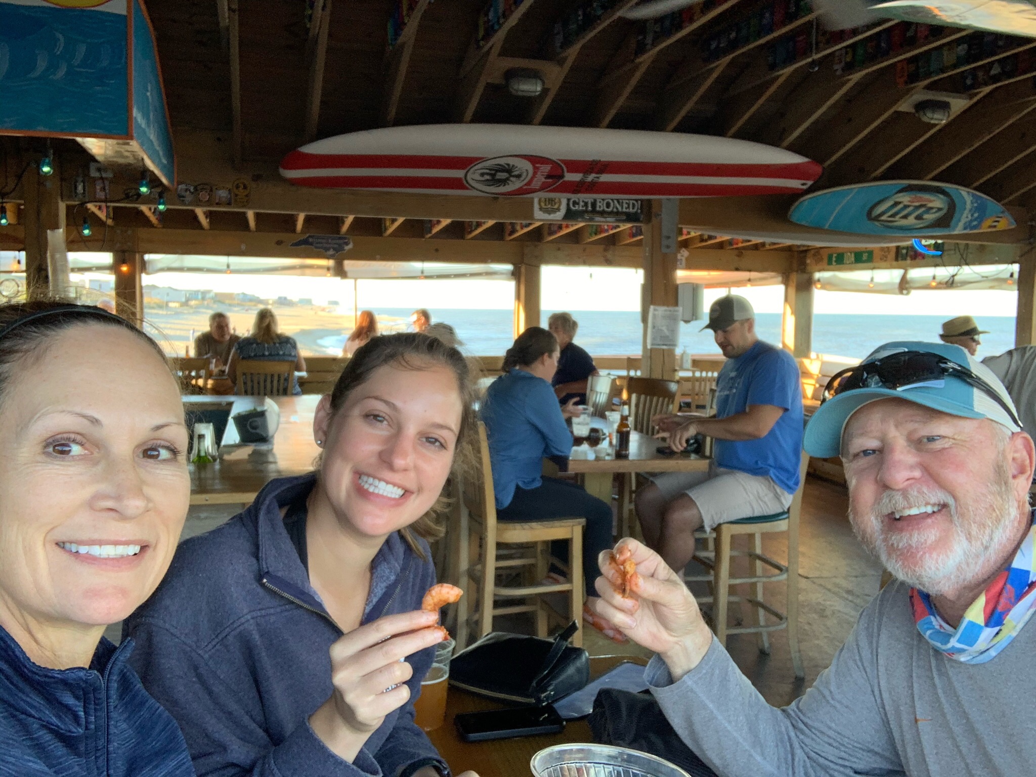 Our best recommendations are Old Nags Head Cafe for the best breakfast, Bodie Island Lighthouse for the best sunset, Fish Heads Bar & Grill for the best peel and eat shrimp special, O’Neil’s for fresh seafood, The Lost Colony Brewery for local beer, and Miller’s Waterfront Sunset Bar & Grill for sunset drink and appetizers. Oh, don’t forget about Duck Donuts…only good if you drive out of your way to the town of Duck, classic Joanie.