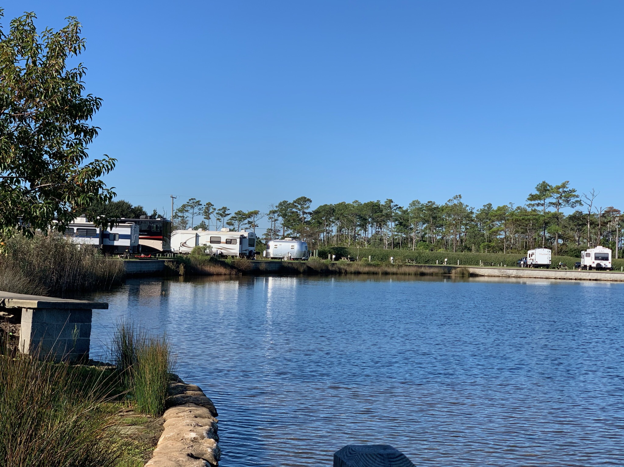 We spent the last two days at our home away from home in the Outer Banks at The Refuge On Roanoke Island RV Park. Although we didn’t get Joanie’s request of shade for Marco, Ron did give us an awesome spot right on the water…just watch out for snakes or alligators.