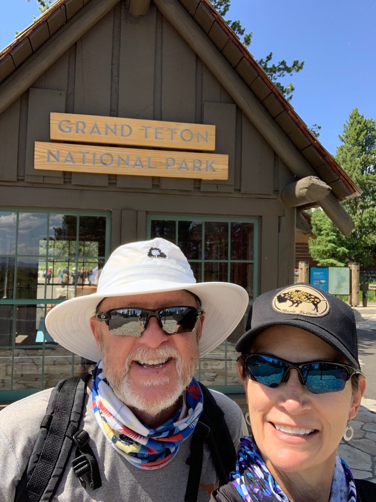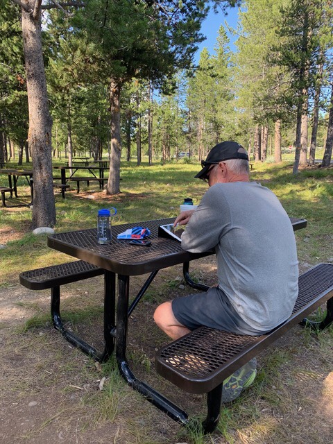 5. Campground in Grand Tetons National Park – This was the only National Park that we could get a reservation at. Everyone is wanting to get out during this pandemic and since we didn’t have an exact travel plan, we weren’t able to reserve other parks. We stayed in the Colter Bay campground which was on the lake and was so pretty. It had a great camp store and even a restaurant for takeout which we did one night. The pine trees were so beautiful surrounding our Little Al. We would walk up to the picnic area and have our coffee while Marc would blog so he could get a WiFi signal. It was just a lovely campground except for staff scaring you to death about those damn bears!