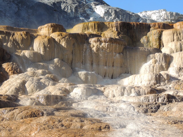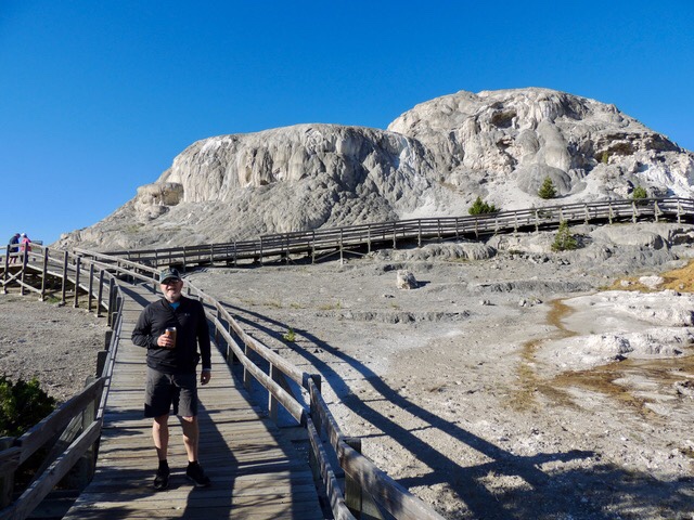 Today we spent the early morning visiting the city of Mammoth and going to the hot springs to the south of the city. They have done a great job installing a boardwalk around the springs which allows close up viewing…and smelling if you know what I mean. Pretty interesting views, not like old faithful but still cool.