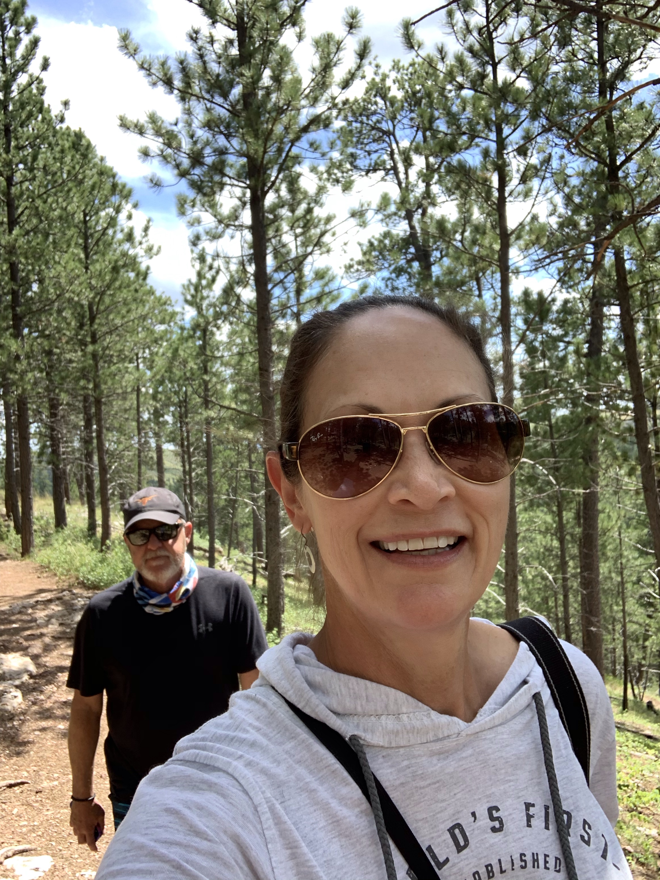Today we drove the 3 + hours to our next destination of Custer SD, most of the way on highway but the last 10 through the mountains. We made a stop at the Jewel Cave National Monument along the way but unfortunately it was closed. Fortunately for me though, as the third longest cave in the world with over 200+ miles of tunnels I know that Joanie would have picked this as Marc’s last stand. Not on purpose, I’m sure, but her desire to not miss one square inch of the caves would have been my demise.