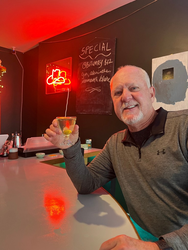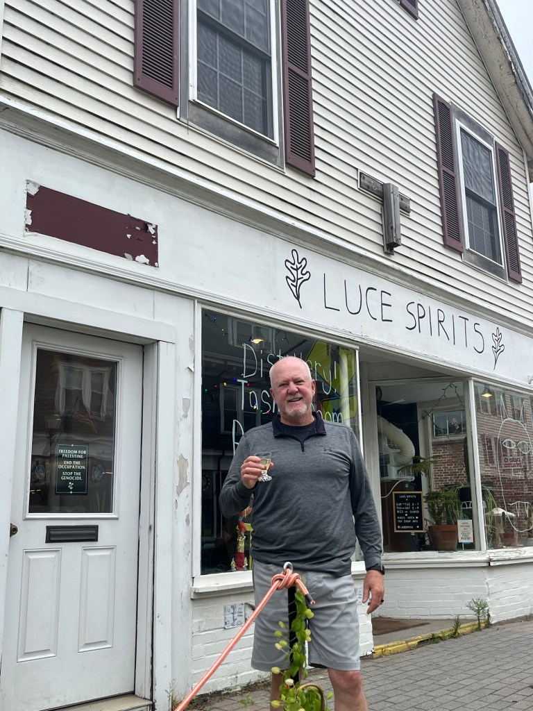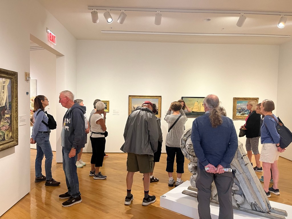 Home.Nice view.Cold early.The photographer.Boy jean model.That’s me.Farnsworth Museum.Art docent listening to the art docent.Staged!Are his eyes open?One of my favorites.The family.Great breakfast.Haddock appetizers and local beer.Winner of beer drinking.Local distillery.Absinthe cocktail.More beer and fried green tomatoes caprese.
