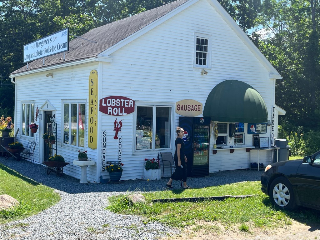 Our time in Bar Harbor was pretty short but we saw all that we wanted. It’s a great harbor city with a lot of shops and restaurants with plenty of tourists. We decided rather than eat there that we would find one of the dozens of seafood restaurants on the way back and we did (after walking out of one because it was too loud…if it’s too loud you’re too old…uh oh). Our clam chowder and lobster bisque were “spot on” and a great way to end our night.