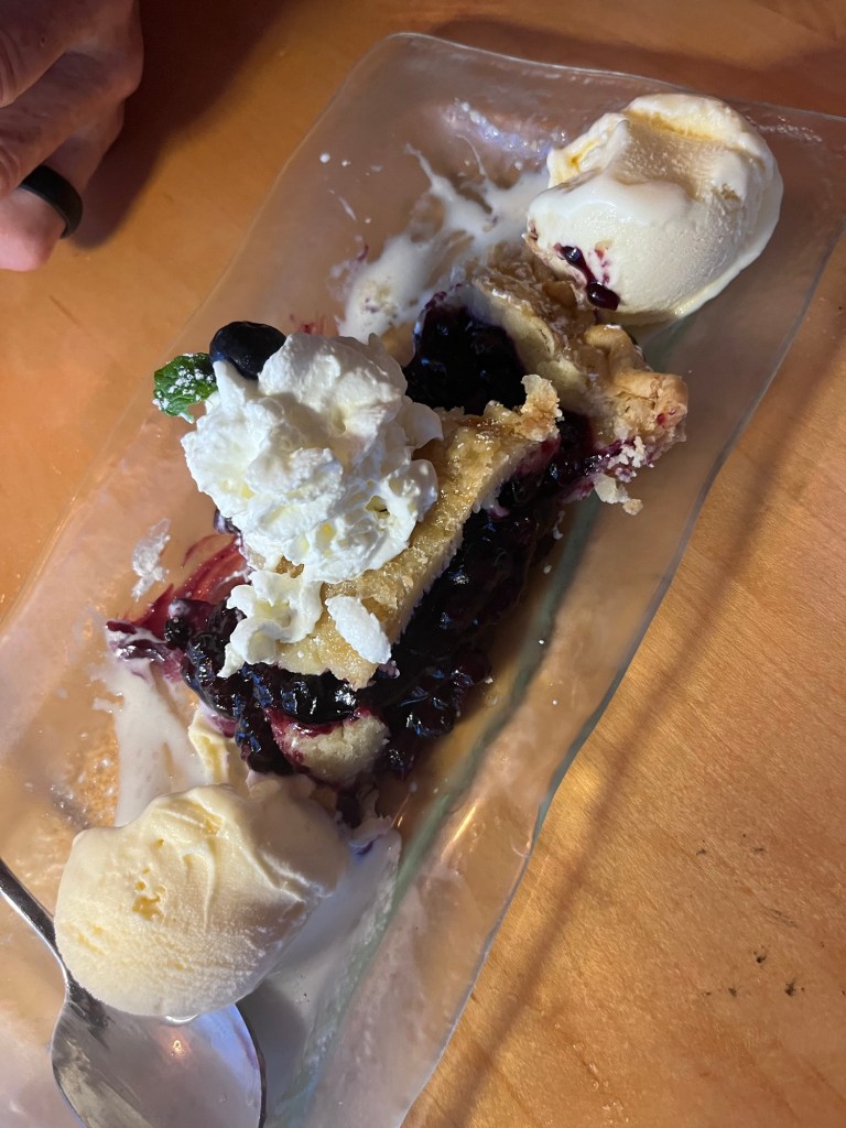The trail.Follow me.Hurry girl.Ok, we can slow down.Blue paint, we’re not lost yet.Did someone say ice cream?The photographer.Oh what a view.Local blueberry pie.The Anniversary couple.