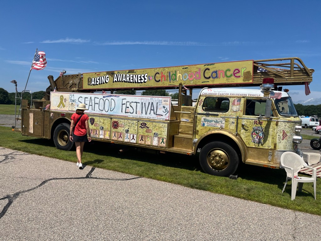 When there are no other food options on the route…Home.OK campground near Mystic.Music at the Mystic Seaport Museum.Checking out the vessels.Little Flo.Me and my girl.Is he awake?No, I don’t want to go on a 3 hour tour.We love festivals.Mucho to chooso.Lobster grilled cheese.Someone wrote on that fire truck.Not a real lobster.Uhhh…roller skating, I think.Early dinner, we don’t want to starve.Anyone like seafood?Here it comes.