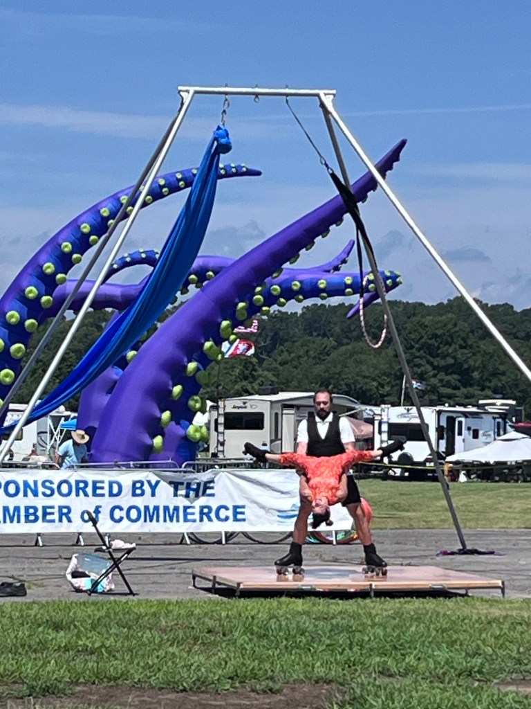 Today we did what we have become pretty good at on this trip, we went to a seafood festival and ate even more local cuisine. The highlight of the festival were the acrobats on high wire and roller skaters on a 10’ x 10’ plywood board…you know you have become your parents if you ever utter those words! Obviously the highlight was Joan’s lobster grilled cheese sandwich.