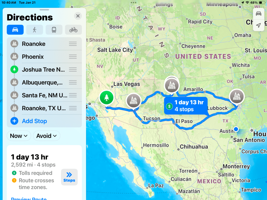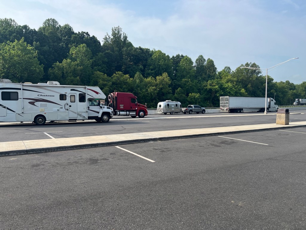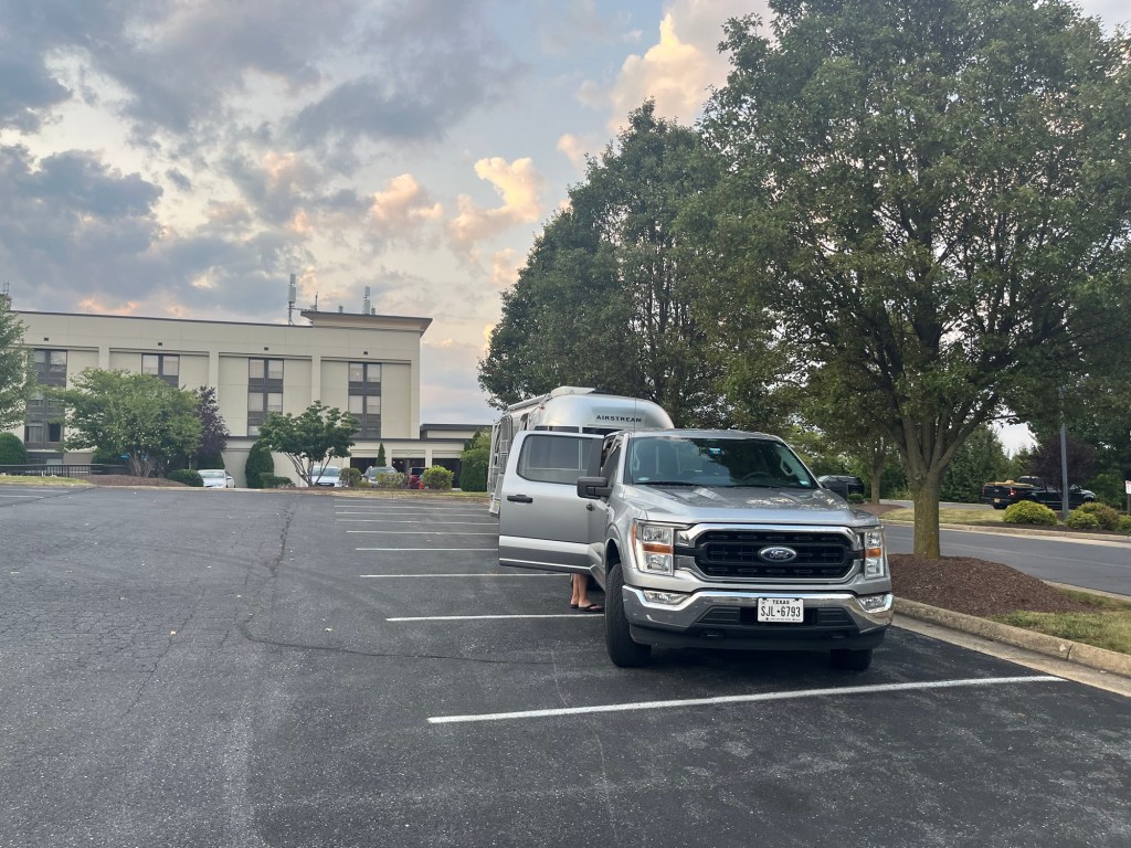 Update…just woke up to a nice breeze of around 60 degrees pushed through the trailer by our roof fans, turns out 9 hours of driving = 9 hours of sleeping. We are refreshed.