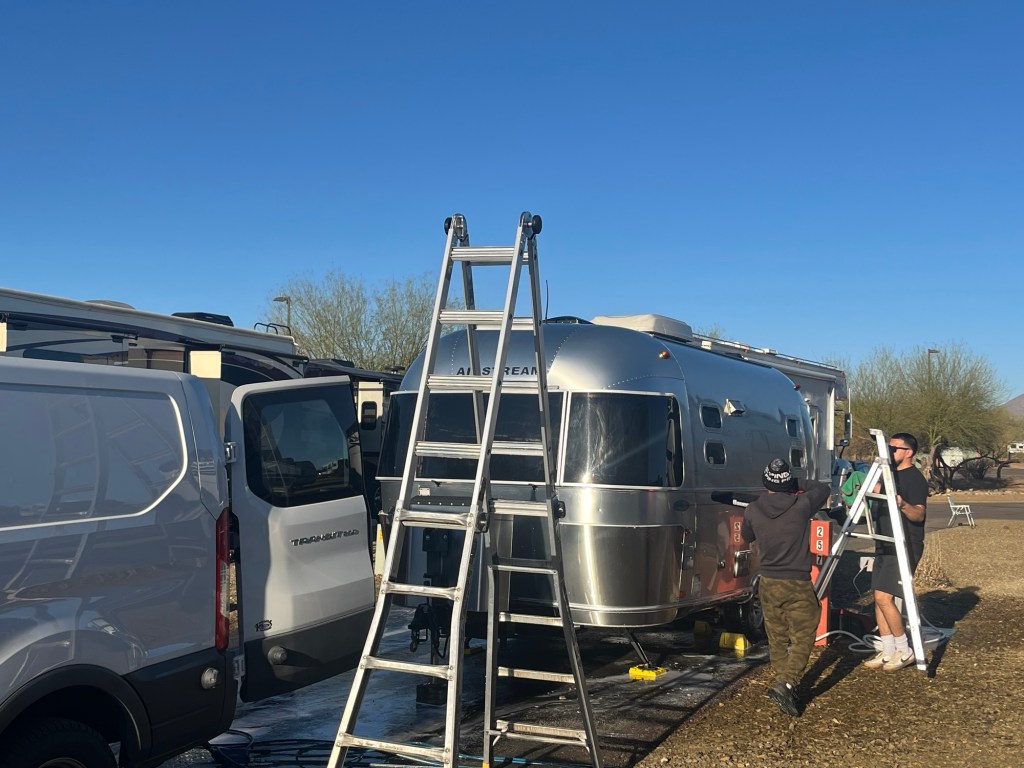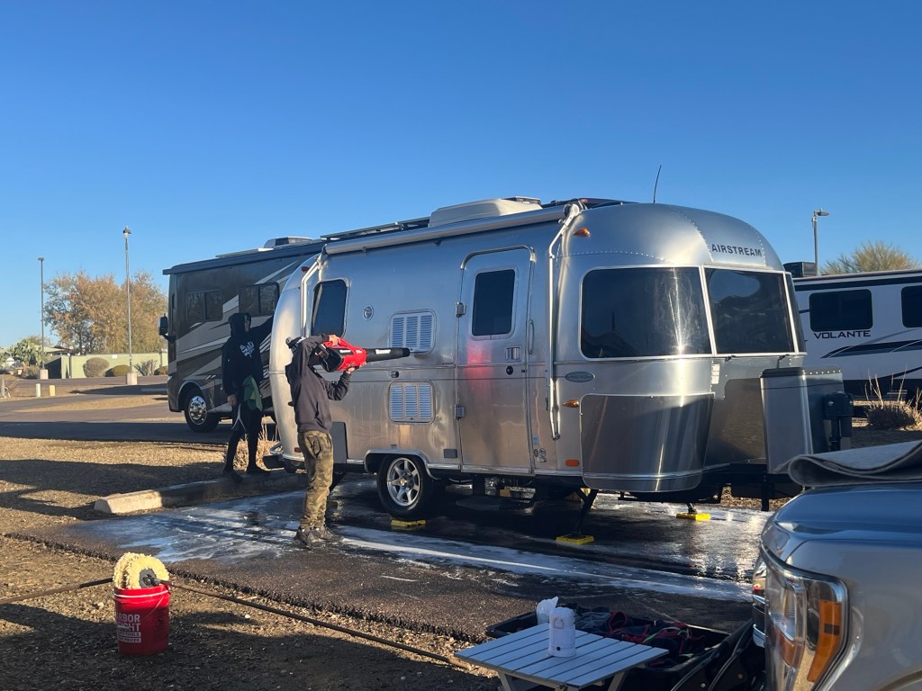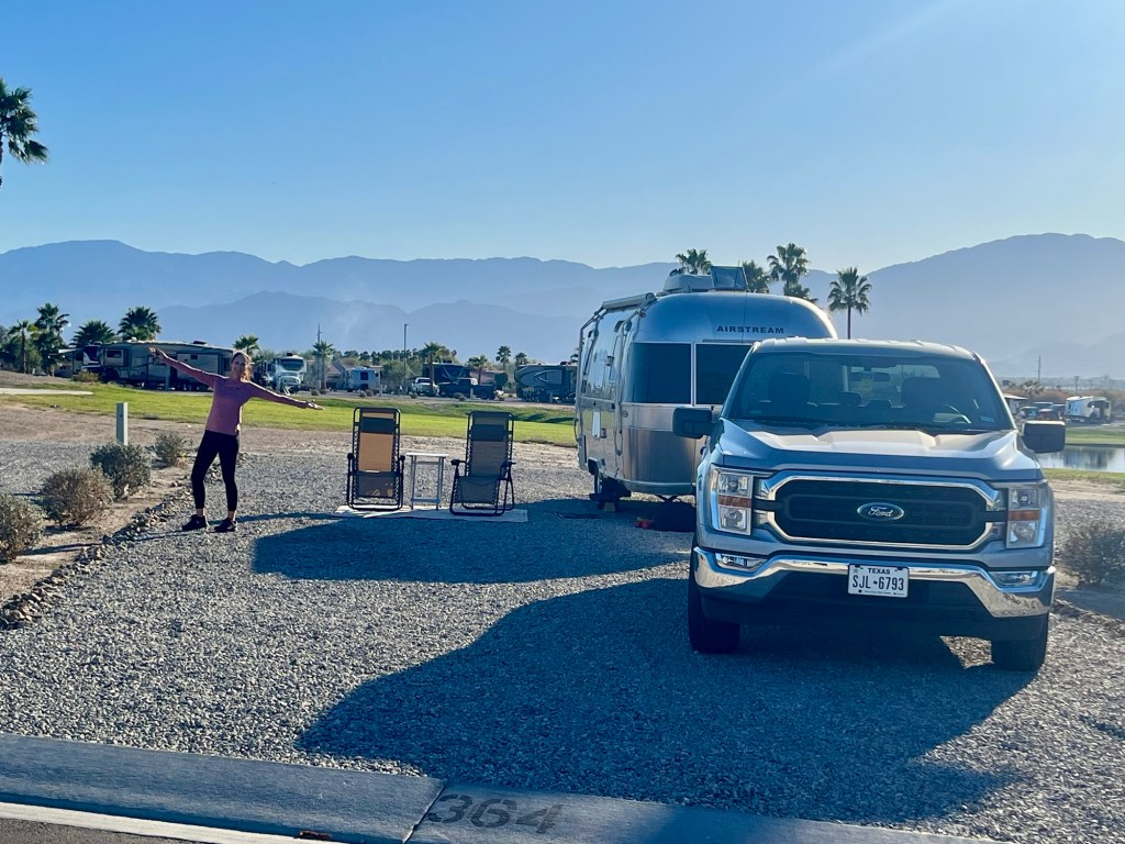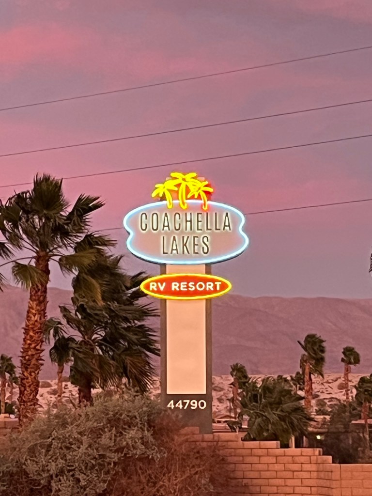 We landed at the Coachella Lakes RV Resort and without any question it is the nicest RV spot we’ve been to. And just like all the others there was an old dude sitting in his lawn chair guaranteeing I set up Little Al correctly, it is so nice getting positive remarks about my backing.