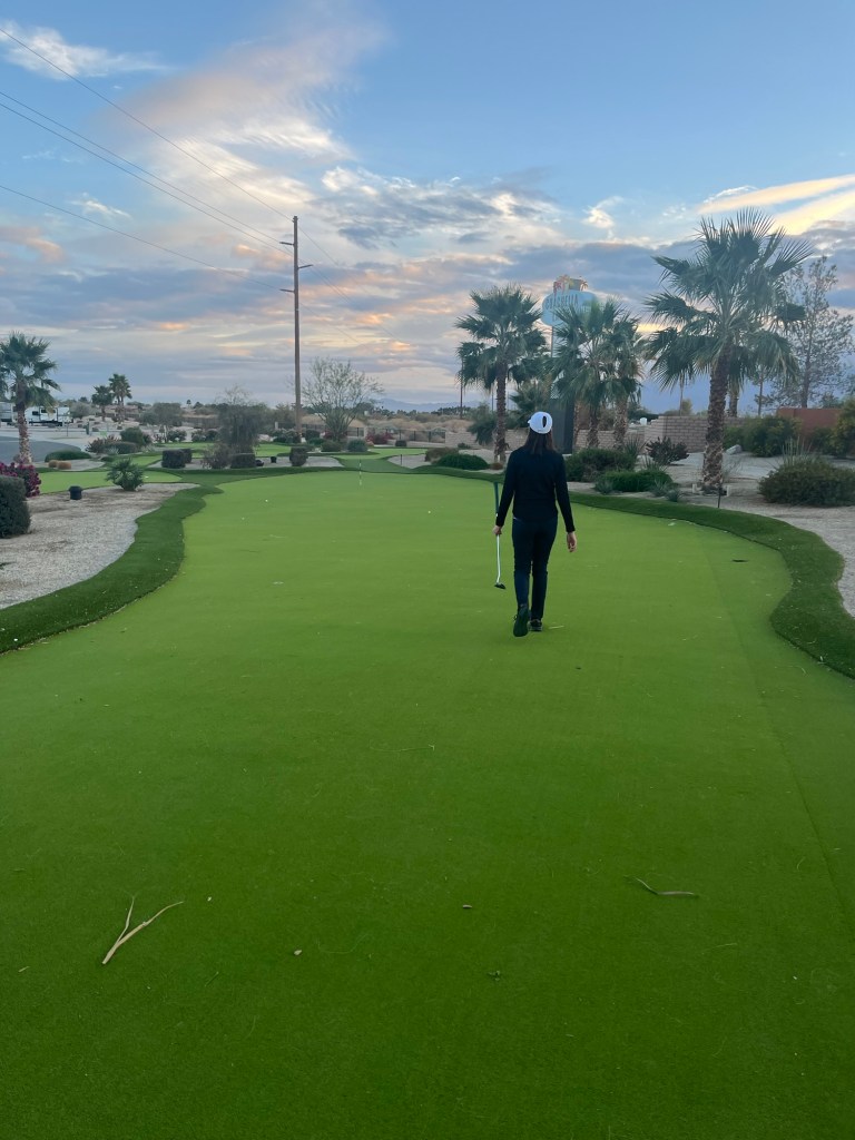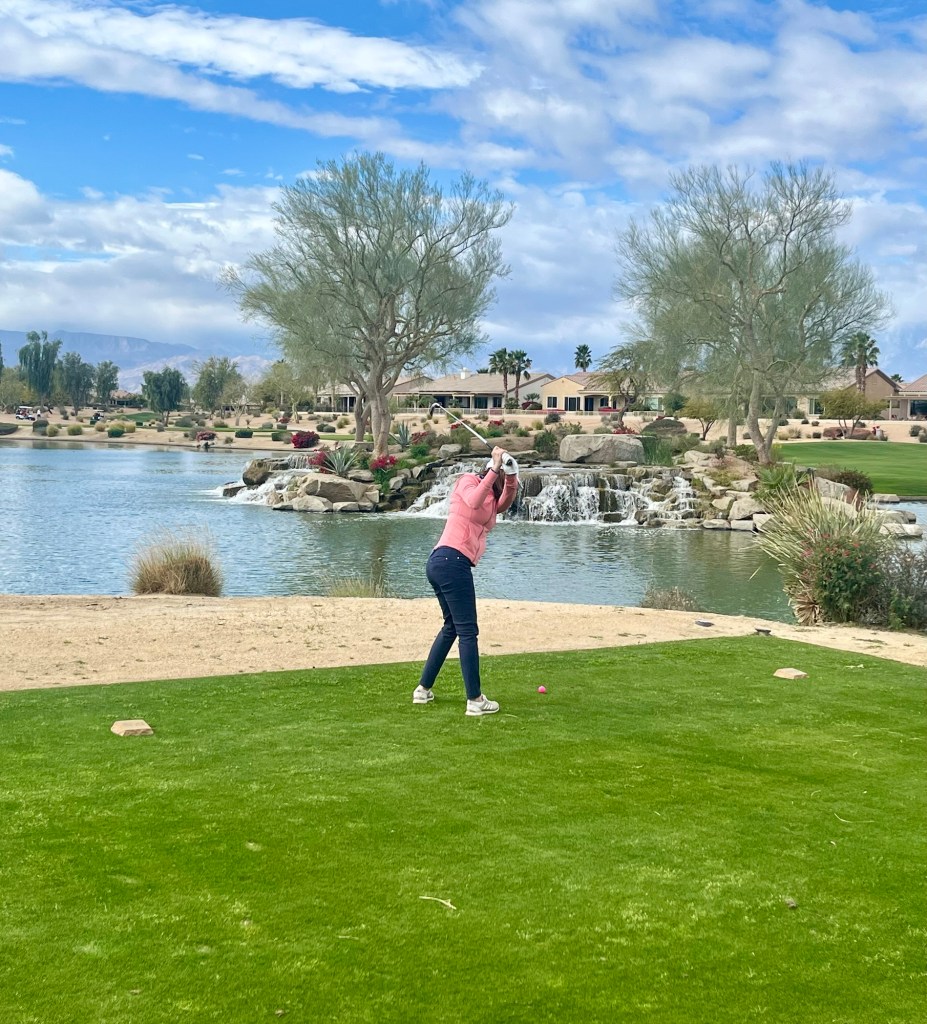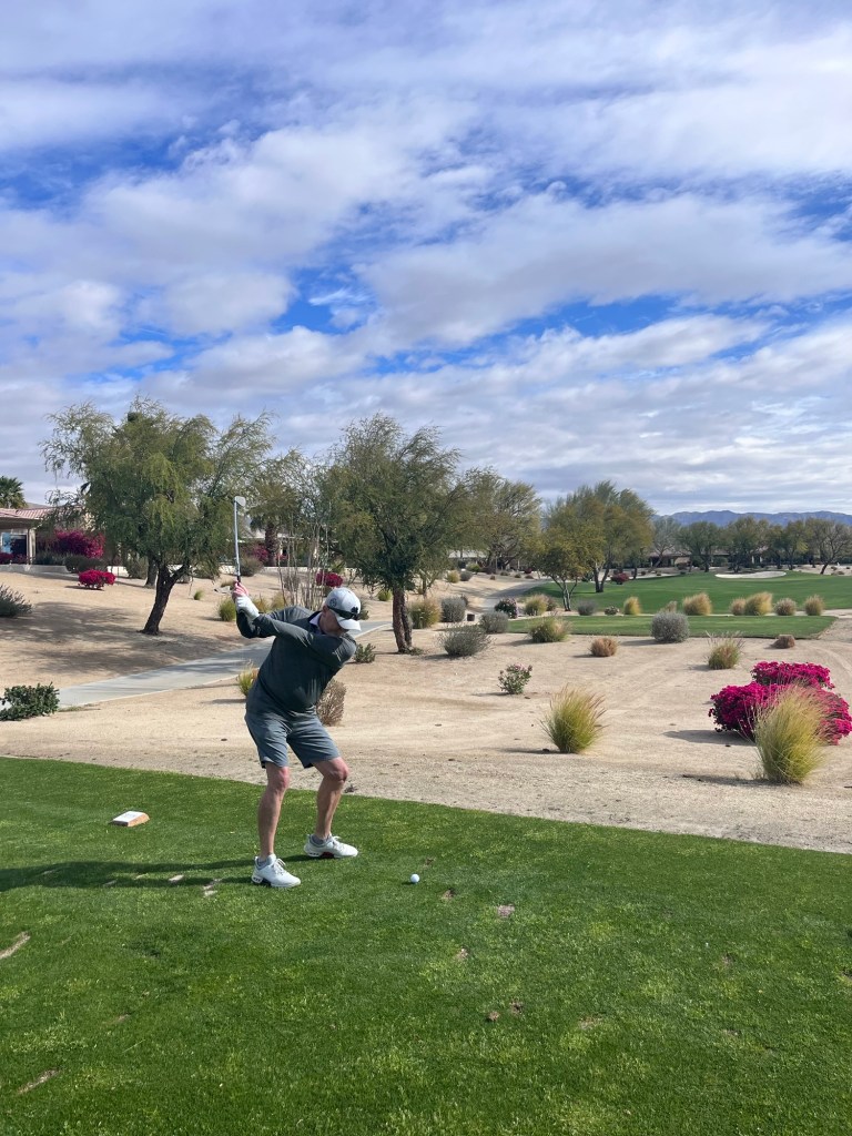 On Wednesday we made a tee time at Shadow Hills Golf Club in Indio, based on the prices we assumed was a regulation course. As it turns out it was a par 3 course spread out enough that you were required to use a cart. As our starter told us, “it’s the number 1 rated par 3 in California and the number 7 rated par 3 in the US”.