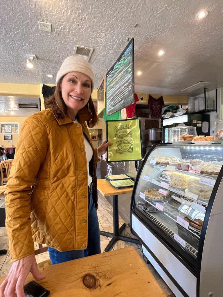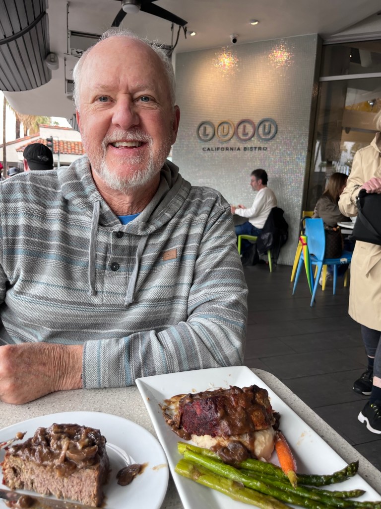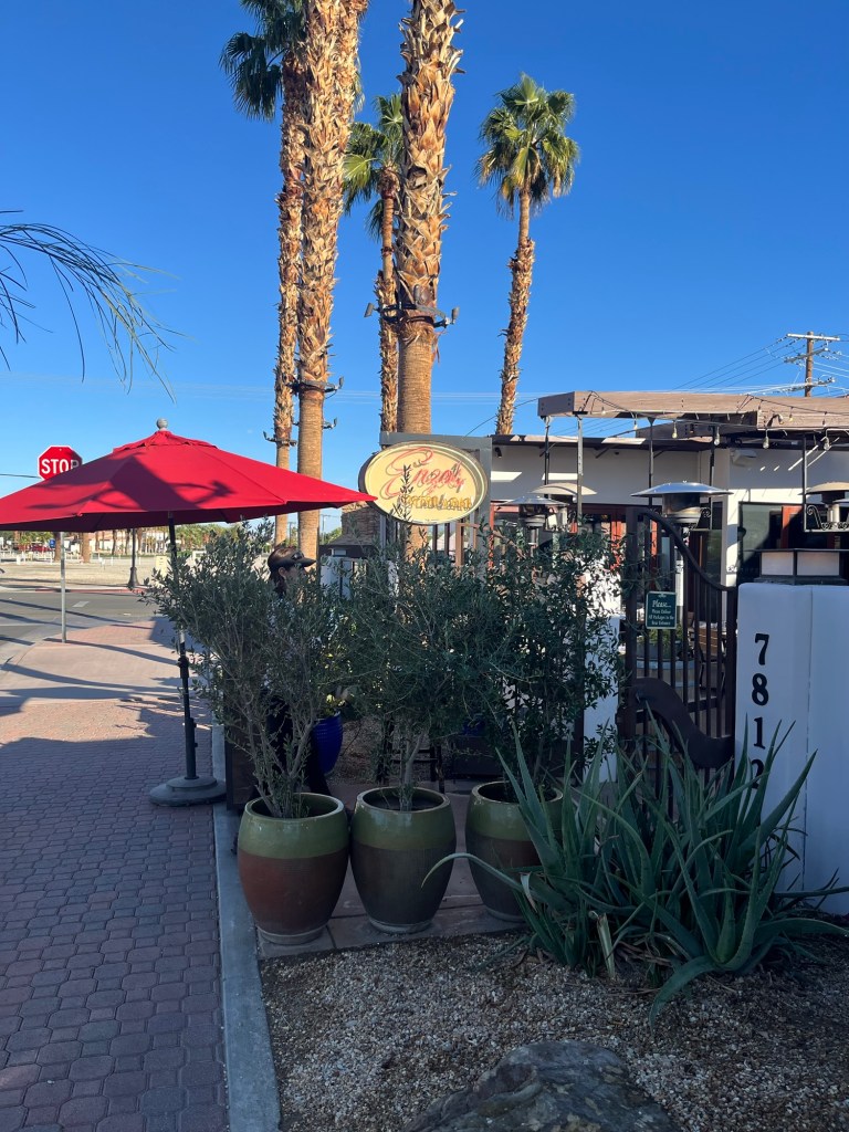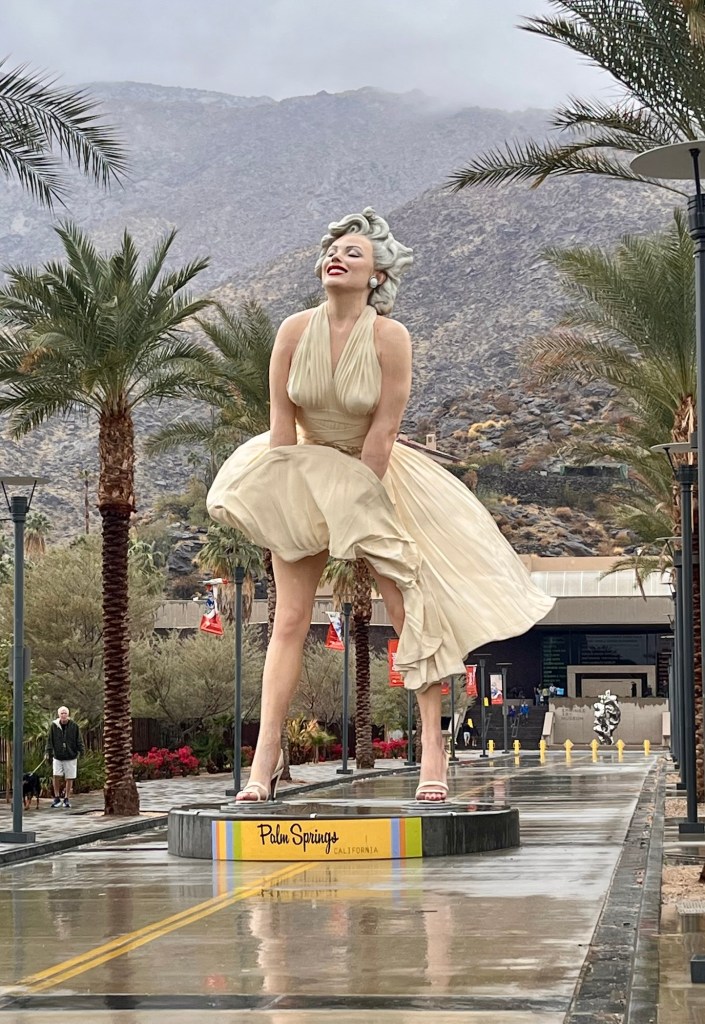 Yesterday, the rain day, we spent walking around downtown Palm Springs…former home to many old movie stars. Unfortunately the rain deterred most of our shopping (oh darn) but we were able to enjoy lunch at Lulu’s, a cool old diner. The mushroom soup and meatloaf were fantastic.