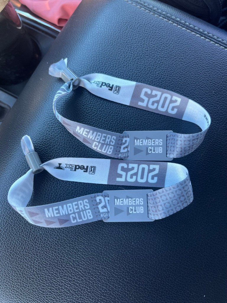 After playing we met up with a dude selling Membership passes to the Open. I always feel good about meeting someone with cash in my pocket at a QT. When he pulled up in his white Tesla and pink golf shirt I felt a lot better about the transaction. And now I know why so many idiots throw their full beer cans onto the course, our special wristband bands included all you can eat and drink.